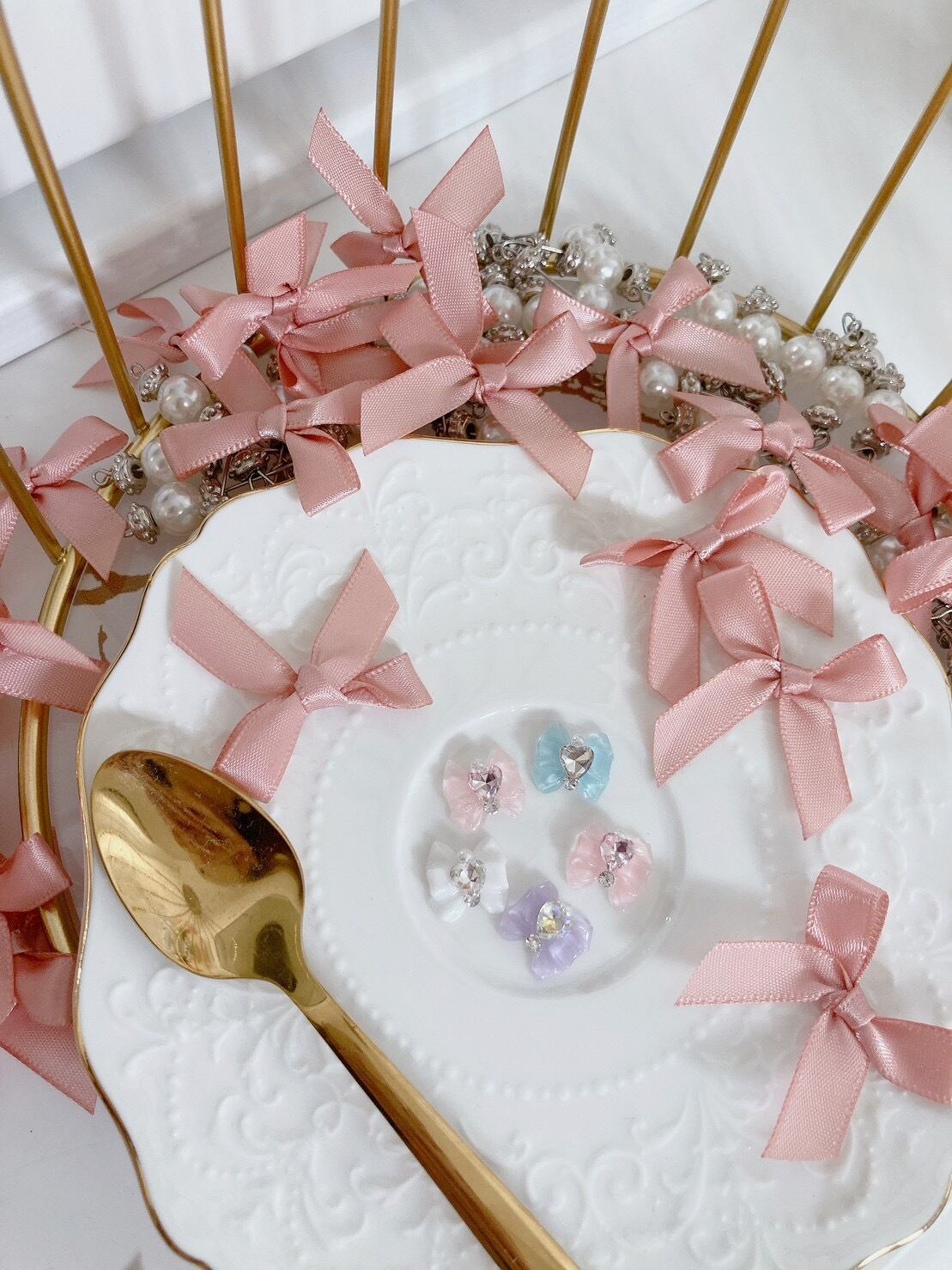 ネイルパーツ ビジュー付きリボン 2個入り